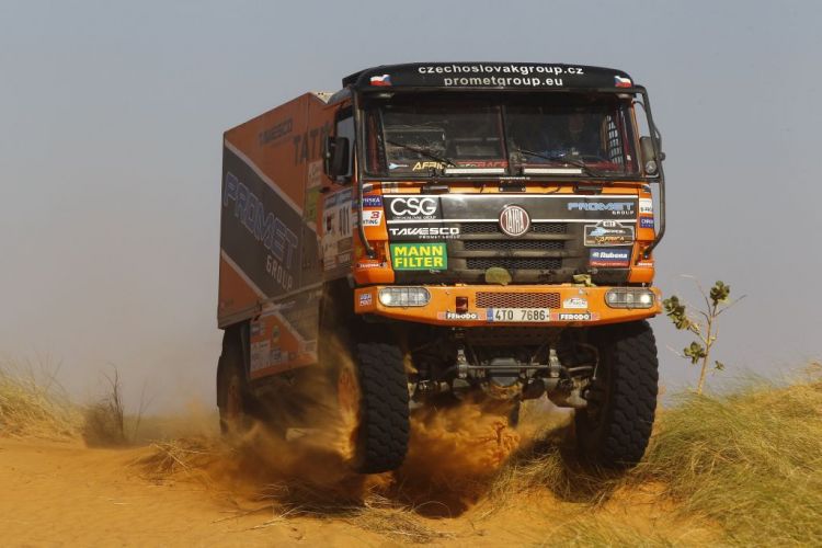 Tomáš Tomeček se na start postaví opět s Tatrou, vyrobenou už v roce 2005, ale stále vylepšovanou a ve skvělé kondici. „Jedeme se stoprocentní Tatrou, to bych chtěl zdůraznit. Z Tatry je dvanáctiválec o výkonu přes 700 k, převodovka, kabina a samozřejmě podvozek. Žádná elektronika, kromě navigačních přístrojů, jinak vše mechanické. Speciály na jihoamerický Dakar mají až 1000 k, ale každou třetí čtvrtou etapu musí měnit turbodmychadlo a přezouvat pneumatiky. Ptám se, kam se vytratila ta radost z dobrodružství. Motor byl původně vyvíjený pro armádu, písty i hlava válců jsou z osmiválcové verze. Mazání je upravené kvůli náklonům, kterým je vůz vystaven třeba v dunách. Přibylo pár koníků, čímž jsme dosáhli lepšího průběhu točivého momentu. Vývojová převodovka je hlídaná odborníka z Tatry a i po sedmi závodech je stále v dobré kondici. Při její repasi jsme neměli žádné velké problémy. Letos jsme se hodně zaměřili na pneumatiky, naposledy jsme měli jedenáct defektů. Do náročných etap povezeme i tři rezervy. Hodně jsme zapracovali i na podvozku, opět budeme spoléhat na tlumiče Reiger Racing. Jak říkávám, jedeme takové retro.“