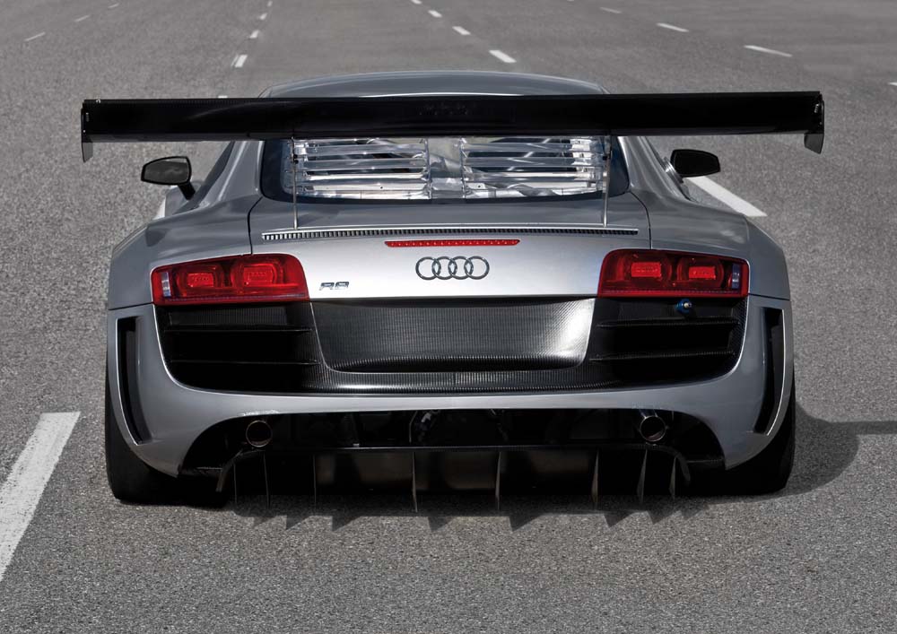 Závodní Audi R8 odpovídá kategorii GT3, ale protože předpisy zakazují vozům této kategorie pohon všech kol, bude vybaveno pouze pohonem zadních kol, typickým pro vozy GT. Výkon motoru přenáší na kola nová šestistupňová sekvenční převodovka. Podvozek používá téměř výhradně komponenty sériových vozů. Nejvyšší bezpečnost zajišťuje dlouhý seznam bezpečnostních opatření. Modifikovaná příď a rozměrné zadní křídlo generují na trati nezbytnou přítlačnou sílu.