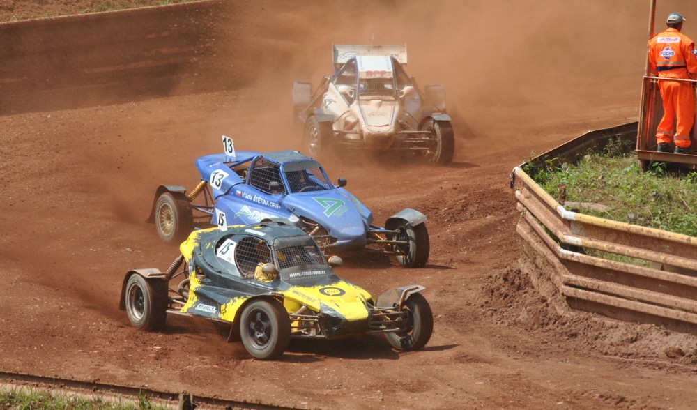 [*(3] Sobotní první série rozjížděk se jela na hodně mokré trati po asi hodinové pořádně dešťové přeháňce, a tak byly výsledky, stejně jako třeba měřeného tréninku velkých bugin „trochu zavádějící“, ale v neděli bylo vše už v pořádku.