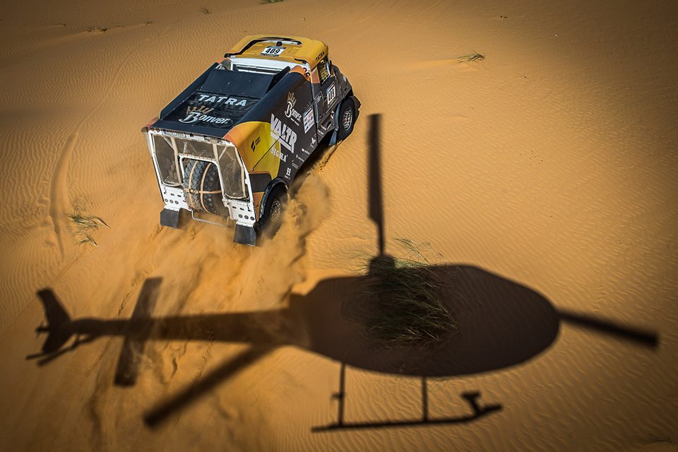 Otázka poslední. Včera jste, Jardo, slibovali, že BMW Victora Koroshavtseva doplníte o logo Tatra. Jak to dopadlo? „No, málem to dopadlo,“ odpovídá pilot s úsměvem. „Samozřejmě, že jsme to mysleli v žertu, protože emoce za volant nepatří, ale přesto jsme mu vážně málem na záda skočili, i když to vůbec nebylo plánované, natož chtěné. Victor se totiž zapíchl za dunou a my jsme o něm vůbec nevěděli, ani jsme netušili, kde vlastně je a po skoku z duny jsme dopadli asi půl metru vedle něj. A když jsme viděli ten obrovsky vyděšený výraz v očích jeho spolujezdce, (Antona Nikolaeva), jak řval a mával, když viděl jak na něj padá ten obrovský znak „Béčka s korunkou“ (znak hlavního partnera týmu skupiny Bonver), který máme na krytu diferáku, to jsme se v tu chvíli opravdu s chutí zasmáli. Chyběl kousek a měl z toho Miníka,“ uzavírá Jarda Valtr dnešní povídání o Africa Eco Race.