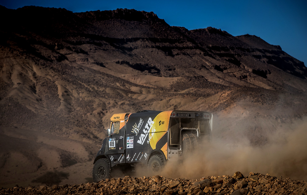 V hodnocení kamionů z dnešní etapy „Valtrovci“ tedy vyrvali bronz, když další z Čechů, Tomáš Tomeček na posádku Bonver Dakar Projectu najel 4:37 minuty a druhým etapovým časem svou průběžnou ztrátu na krajany snížil na 26:16 minut.