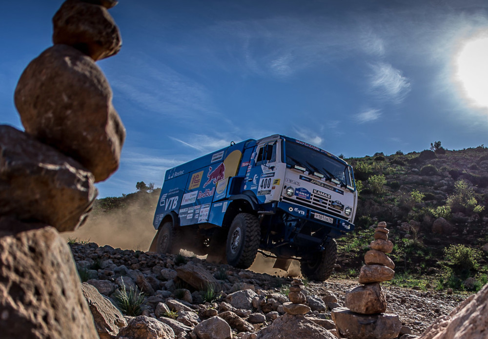 „Dnes to byla hodně členitá trať. Jelo se i v menších dunách, i hodně v kamení, i po rovných pouštních pláních na maximální rychlost. Jedeme to, co nám dovoluje technika a v těchto podmínkách na hranici možností podvozku auta, takže se snažíme držet tempo, ale bohužel Kamazům to dneska jelo pěkně a tak to prostě je.“ Těmito slovy uvádí Jarda Valtr hodnocení druhé etapy. „Auto drží, zdraví taky, i když dneska jsme, jak to bylo rozbité, hlavně od zadní nápravy, pochytali nespočet ran. Jezdili jsme hodně po předních kolech, takže dneska to opravdu hodně bolelo a zítra to bude to samé,“ pokračuje Jarda s odstupem času už se smíchem.