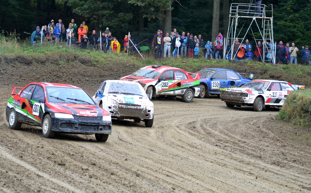Jeho místo na stratu tak zůstalo volné, stejně jako Jana Bartoše ve druhé řadě. Do první řady se tak postavil Bořivoj Kořínek s Fordem Focus a Pavel Svoboda s Mitsubishi Lancer, který se také hned ujal vedení a s přehledem zvítězil. Na druhém místě jezdící Kořínek bohužel v polovině ze závodu odstoupil a uvolnil tak pozici Kuželovi s Audi Quattro, který dlouho sváděl dramatický souboj, stejně jako v rozjížďce, s Radkem Plichtou se Subaru Impreza, vítěze B-finále. Plichta útočil tak dlouho až se na trati zkrápěné celý den deštěm klouzal víc než je zdrávo a propadl se poslední místo. Ale nevzdal se a bojoval dál až na páté místo. Za vítězným Martinem Svobodou dojel Luboš Kužel a Jiří Bret se Škodou Fabia. Dušan Horčička, kandidát na titul, se neprobojoval do finále a skončil až pod medailovým umístěním.