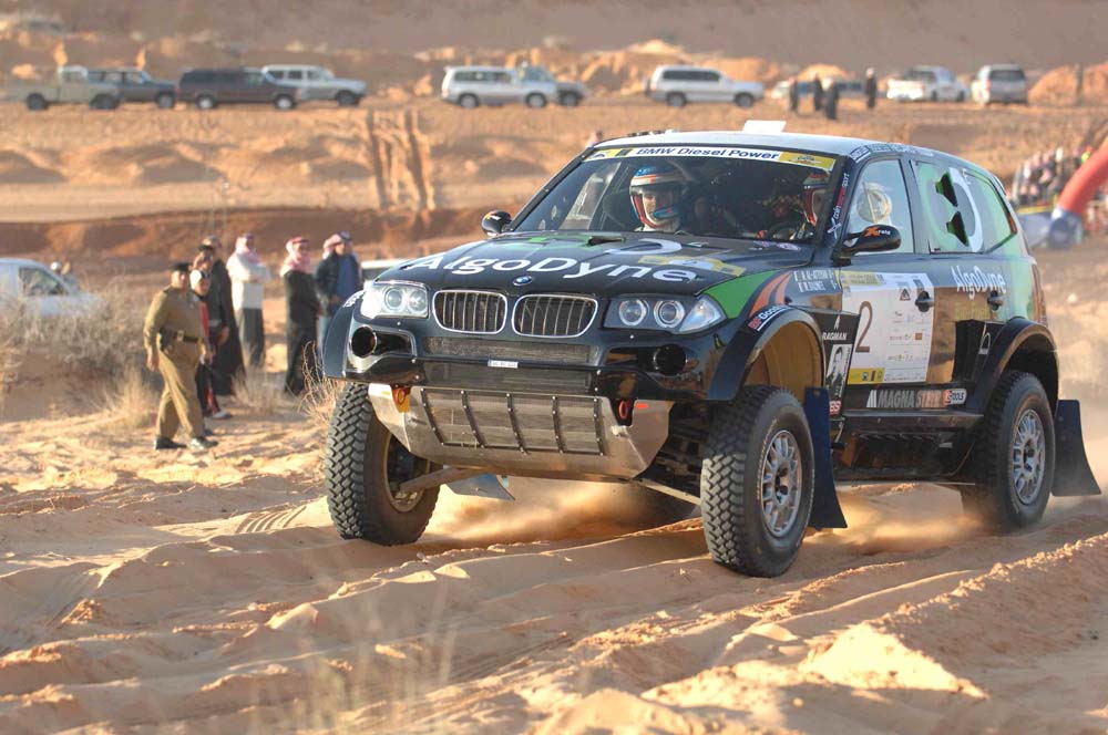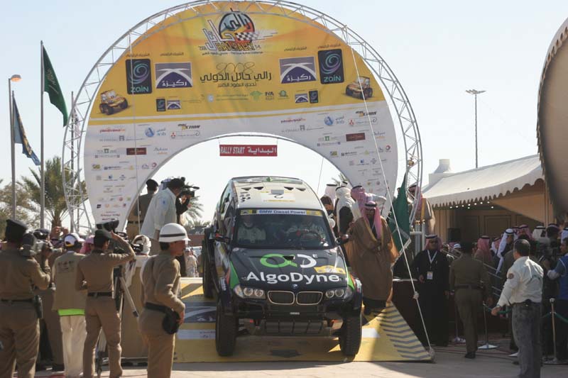 V první etapě, když nepočítáme krátký prolog čekalo na posádky 300 náročných kilometrů v písku. Jako první vyrazil na trať tovární jezdec BMW – Nasser Al-Attiyah z Quataru s francouzským spolujezdcem Mathieu Baumelem. Ten sice stabilně jezdí v týmu X-raid s mladým Chicheritem, ale protože v Saudské Arábii se ženy nemohou účastnit závodů a Nasser má za normálních okolností navigátorku, musel si jej vypůjčit.