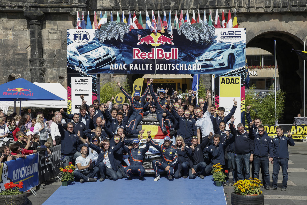 Tým Hyundai Shell World Rally dosáhl skvělého výsledku v rámci své teprve deváté účasti v seriálu FIA World Rally Championship (WRC), když jeho dva jezdci Thierry Neuville a Dani Sordo dojeli v německé rally na prvním resp. druhém místě.