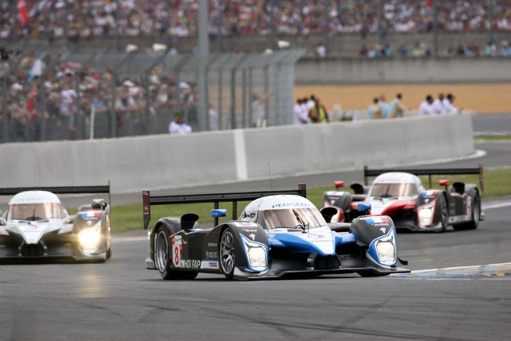 Podstatnou část dramatického závodu se pohyboval Peugeot na špici startovního pole. Z pole position se hned na startu prosadil Pedro Lamy před dalšími dva vozy Peugeot 908 HDI FAP. Po dvou hodinách závodu, musel Sarrazin, který převzal vedoucí vůz, do boxů kvůli problémům s převodovkou. Nutná oprava stála šest kol a propad na 31. celkovou příčku. V pozoruhodné stíhací jízdě se probojoval Peugeot 908 HDi FAP s číslem 8 až na pátou příčku v cíli. Přitom zajel Sarrazin nejrychlejší kolo závodu v čase 3:19,394, což odpovídá průměrné rychlosti 246,068 km/h.