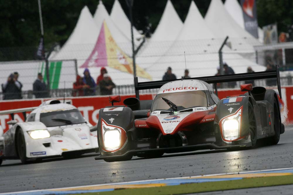 Mezitím na špici bojovaly dva Peugeoty 908 HDI FAP s Audi, přičemž až do ranních hodin, než začalo pršet a rapidně se změnily podmínky určovaly Peugeoty tempo.