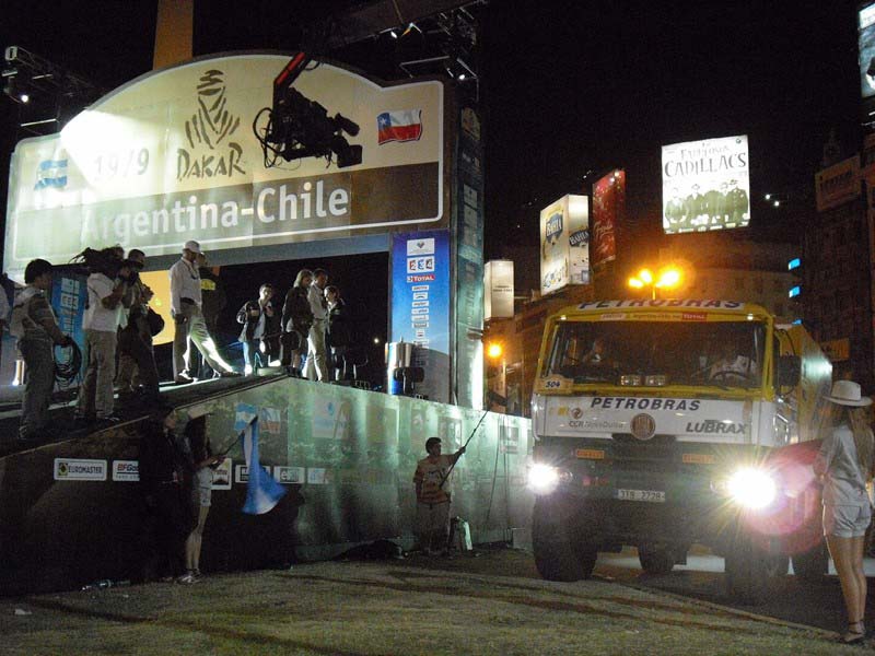 Hlásíme se hned po návratu ze slavnostního startu Rally Dakar 2009. A musíme začít velikou omluvou Argentincům. V jedné z prvních zpráv jsme napsali, že místní lidé Dakar moc neprožívají a nejeví o něj zájem. Ovšem to, co předvedli při startu, to nemá obdoby a nikdo z nás to ještě nezažil. Prakticky celou trasu od uzavřeného parkoviště ke startovní rampě poblíž obelisku v centru města lemovaly tisíce nadšených diváků. Poklona patří rovněž místním úřadům a policii za zabezpečení průjezdu celé trasy. V místní televizi běžel od začátku nepřetržitý program, kde nebyl vynechán ani jeden motorkář, ani jedna posádka auta. Kamery byly na výjezdu z UP, helikoptéra snímala trasu shora, několik kamer bylo podél trati a samozřejmě u pódia. Režie celého přenosu řešila projekci např. třemi okny tak, aby opravdu každý závodník nebyl vynechán.