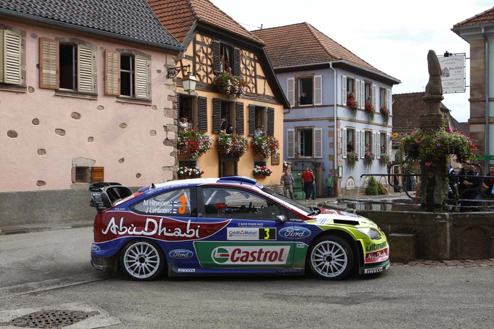 Od první rychlostní zkoušky dal Sebastien Loeb všem ostatních jasně najevo, kdo je v Alsasku skutečně doma. Sebemenší šanci nedal ani svým kolegům Sordovi a Ogierovi, ani Hirvonenovi či Latvalovi s Fordy Focus. O druhou příčku se chvíli přetahovali Ogier a Petter Solberg, po sedmé zkoušce se však na ní definitivně usadil Sordo. Až do 14 zkoušky si držel vynikající třetí místo Ogier, ale po havárii, při níž poškodil tlumiče, ztratil hodně času a propadl se až na sedmé místo.