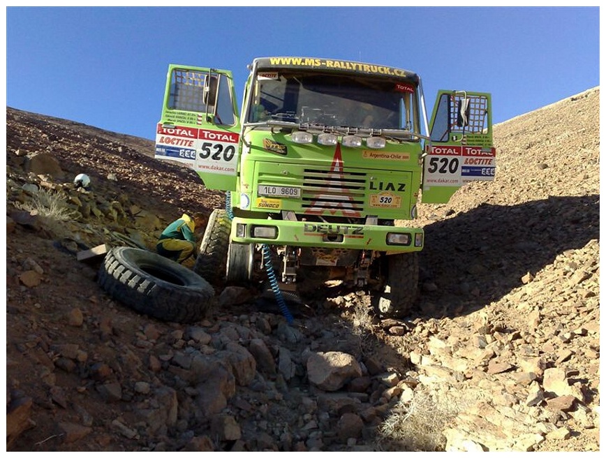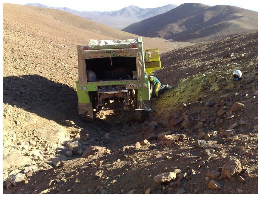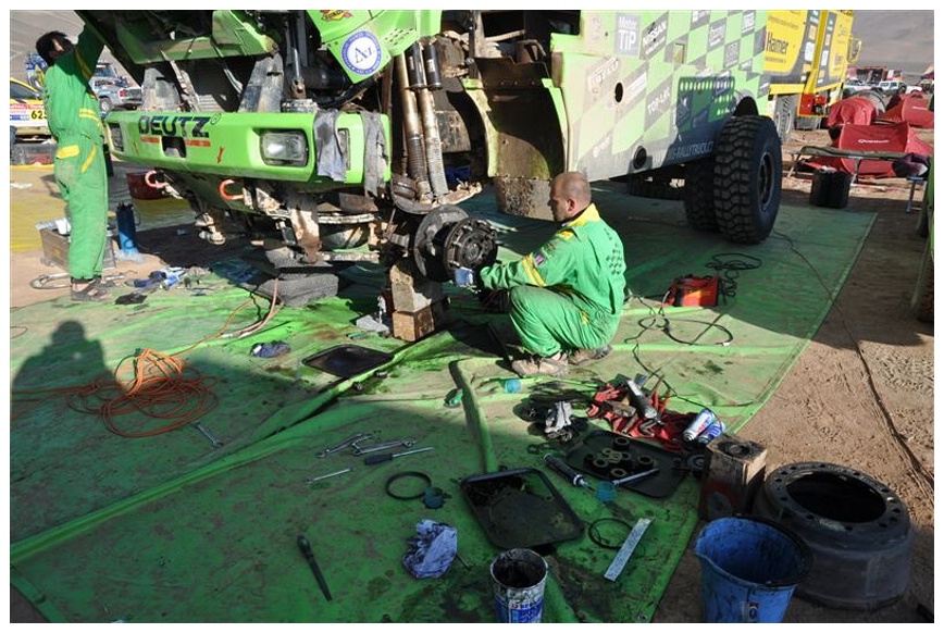Ložisko. Pitomé ložisko, které včas neposlali z Ráby z Maďarska a které teď nemáme jako náhradní. Při etapě do La Sereny se kousnul zadní diferenciál a po rozebrání kluci zjistili, že je chycený i dřík hrušky. To znamená odborně navařit, stočit na soustruhu a pak nalisovat zmíněné ložisko, které navíc ani nemáme.