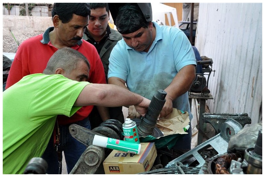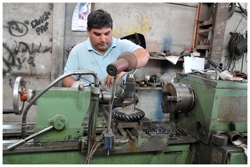 Tam se potkáváme s mechaniky holandských kamiónů a křtíme obchod na Dakar Shop. „Soustružník, jasně, torneria!“ Prodavač ve zlatém ložisku dakarských ložisek evidentně ví, o co nám jde a jdeme dál. Tentokrát je to za rohem. Torneria – soustružna – vypadá jako autoopravny mého mládí.