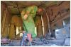 Na dvoře bordel sestávající z převodovek, bloků motorů, trubek, vinglů, náprav a kdečeho, co se určitě jednou hodí. Čekám, že zpoza rohu vyrazí pan Hanzlík ze Slavností sněženek a ukáže mi výhodně nakoupené levé boty nebo včeličkové vesty. Uvnitř pár mašin a sympaťák. Zkoukne naši hrušku, pak poznamená že by to šlo – nebo tak nějak španělsky, a ať přijdeme za hodinu.