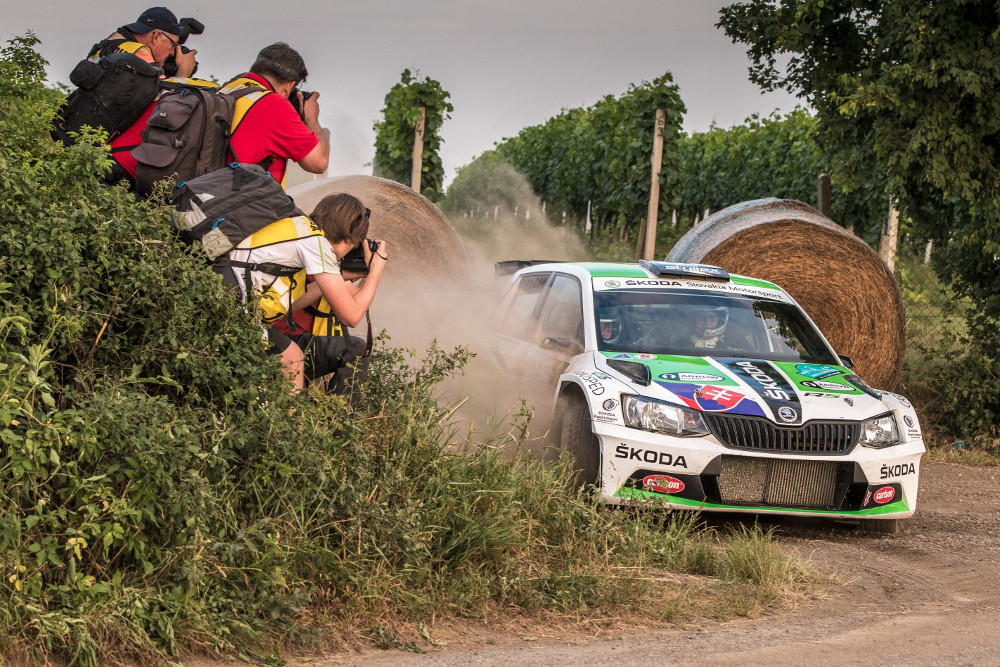 Třetí zastávkou byla Rally Hustopeče, která je zároveň součástí Mistrovství ČR. Vítězství si již tradičně připsal Jan Kopecký, za kterým se v první devítce umístilo dalších osm vozů FABIA R5. Byl to však Koči, který dojel druhý za Kopeckým a na špici slovenského pořadí poté, co porazil celou řadu špičkových jezdců a předvedl svůj talent. Grzyb skončil opět druhý ve slovenském pořadí, 48 s za Kočim a na pátém místě celkového pořadí.