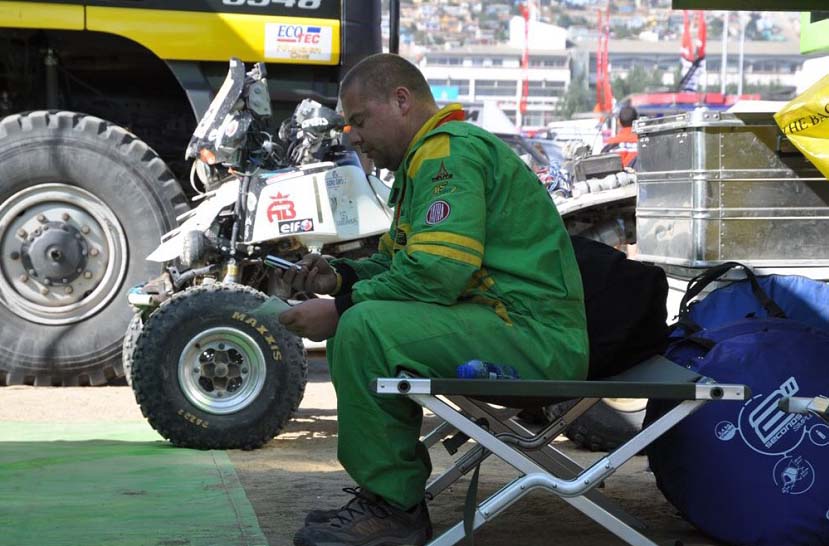 Dakar dělají mravenci. Stovky lidí v zázemí. Ta černooká krásná slečna u výdeje jídla, dvoumetrový pilot televizní helikoptéry, novináři v letadlech i ti co jedou, řidiči pořadatelských aut, časoměřiči, mechanici. A celé to mraveniště se teď přesunulo do přístavu Valparaíso v Chile a žije dál svým životem.