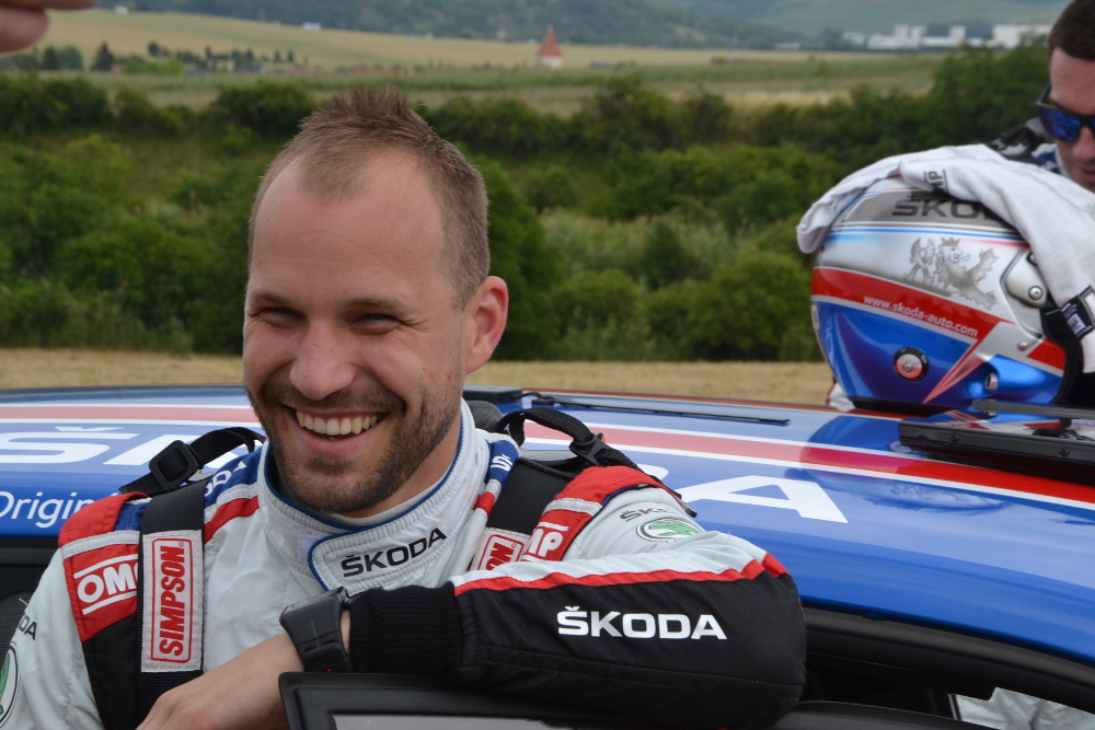 Vůbec. Nedosáhnu na pedály. Jak víte, FABIA R5, nemá posuvné sedačky a my jsme s Honzou výškově tak rozdílní, že abych mohl řídit po něm, musel bych mít dvaceticentimetrové dřeváky a nebo sedět tak, že bych z auta téměř neviděl ven. Zvládnu auto odřídit na přejezdu, ale ostrou rychlostní zkoušku bych jet nemohl.