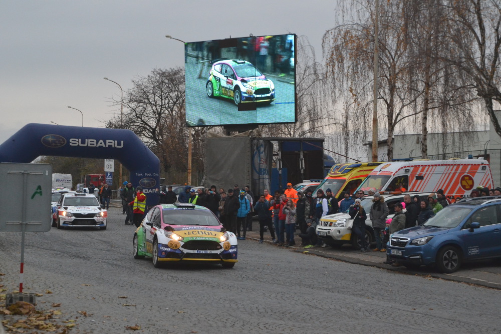 Letos se nezačínalo na Strahově, ale dvěma průjezdy rychlostní zkouškou na Točnou. V obou byl podle očekávání nejrychlejší Jan Dohnal, poprvé před Pavlem Valouškem se Škodou Fabia R5, podruhé před Grzegorzem Grzybem se stejným automobilem, který se také usadil na druhém místě, a bylo jen otázkou, jak velkou ztrátu bude mít na Dohnala. V cílí byl rozdíl nakonec 23 sekund, když poslední zkoušku vyhrál sice Grzyb, ale asi i díky tomu, že neprojel retardér. Žádnou penalizace jsme ale nenašli. Ford Fiesta WRC 2017 zapůjčený z M-Sportu přitahoval největší pozornost a ještě než jan Dohnal dorazil ráno do servisu, tak bylo zázemí obklopeno stovkami nedočkaých diváků.Přeci jen vidět špičkovou soutěžní techniku se nepoštěstí vidět každý den.