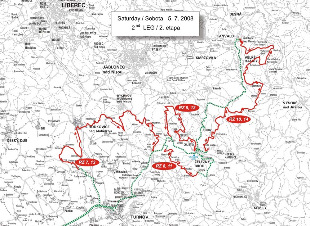 Druhá etapa Rally Bohemia zavede účastníky tradičně severně od Mladé Boleslavi. Rychlostní zkoušky sobotní části proběhnou mezi Turnov, Železným Brodem, Tanvaldem a Jabloncem nad Nisou.