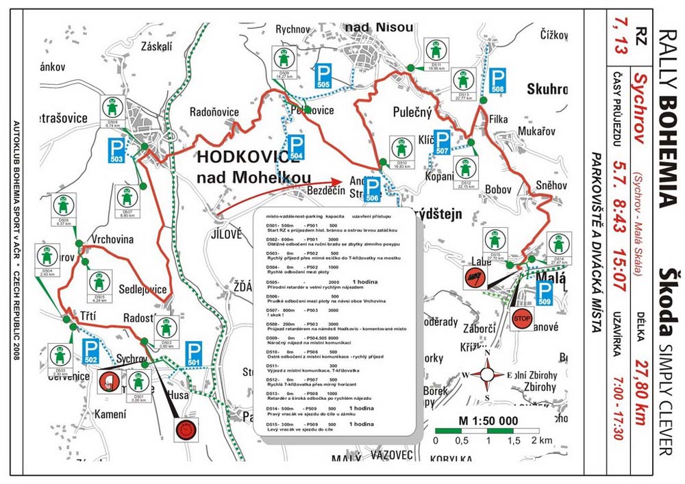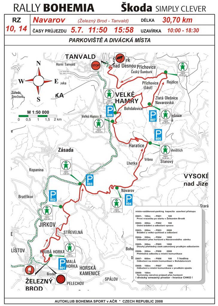 Jeden z klenotů Rally Bohemia. I proto byla zařazena na začátek druhé etapy a současně na závěr, kdy spolu s Navarovem bude tvořit finálovou dvojici měřených rychlostních testů o délce dosahující téměř 60 ostrých kilometrů. Letos se pojede téměř ve stejné podobě, jako v roce minulém. Mírné změny doznal pouze průjezd Hodkovicemi, ale o atraktivní zatáčku na kostkách náměstí diváci ani tak nepřijdou.