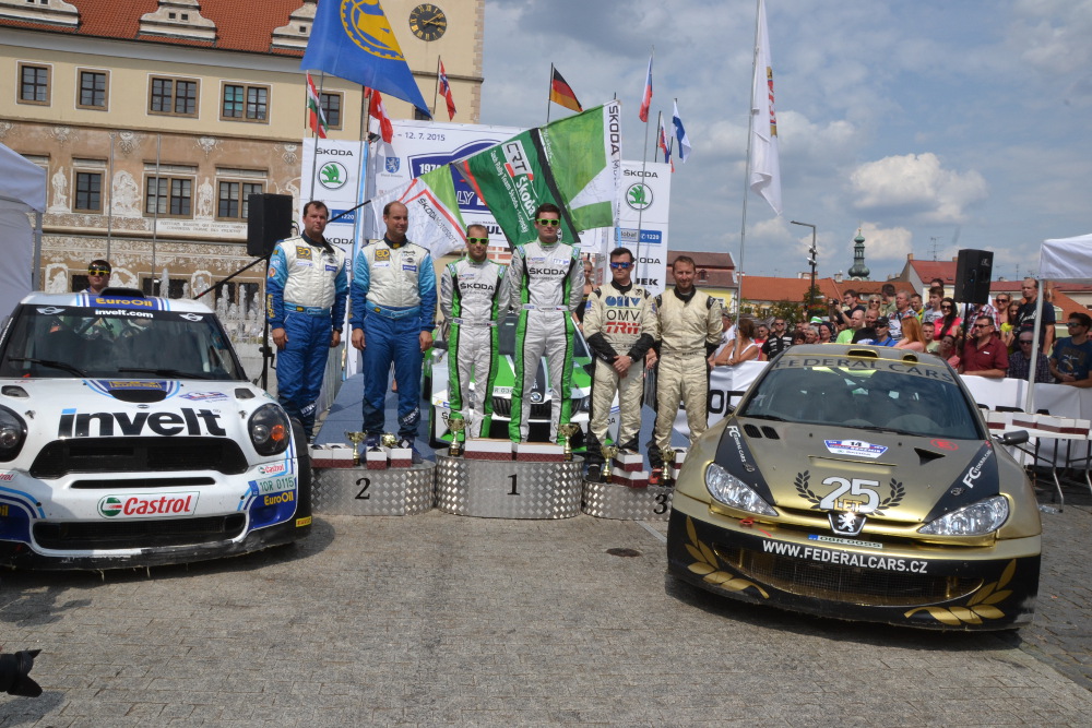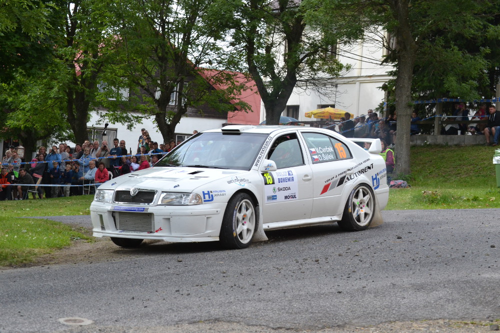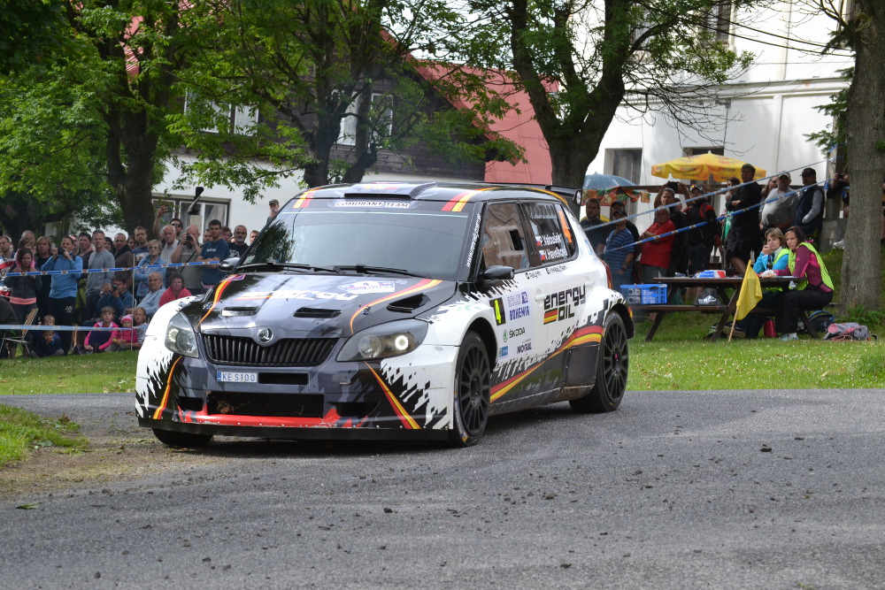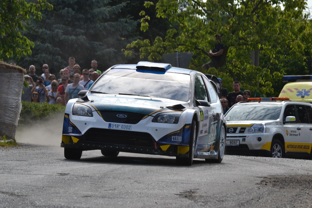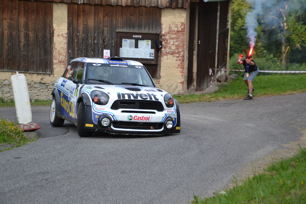 Druhou příčku tak zaujali Václav Pech s Petrem Uhlem na MINI, kteří po první etapě ztráceli na Kopeckého s Dreslerem půl minuty. Třetí příčku tak trochu překvapivě držel Jan Dohnal s Fordem Focus WRC (+1.16), dále Pavel Valoušek (+1.31,6), Štěpán Vojtěch (+ 1.59), Roman Odložilík (+2.17), Esappeki Lappi (+2.30), Jan Sýkora (+2.31.7). Až na jedenáctém místě jel Jan Černý opět se Škodou Fabia S2000 od Romana Kresty. A mimo hru byl od druhé zkoušky Miroslav Jakeš, který musel Citroën DS3 R5 odstavit pro technickou závadu.