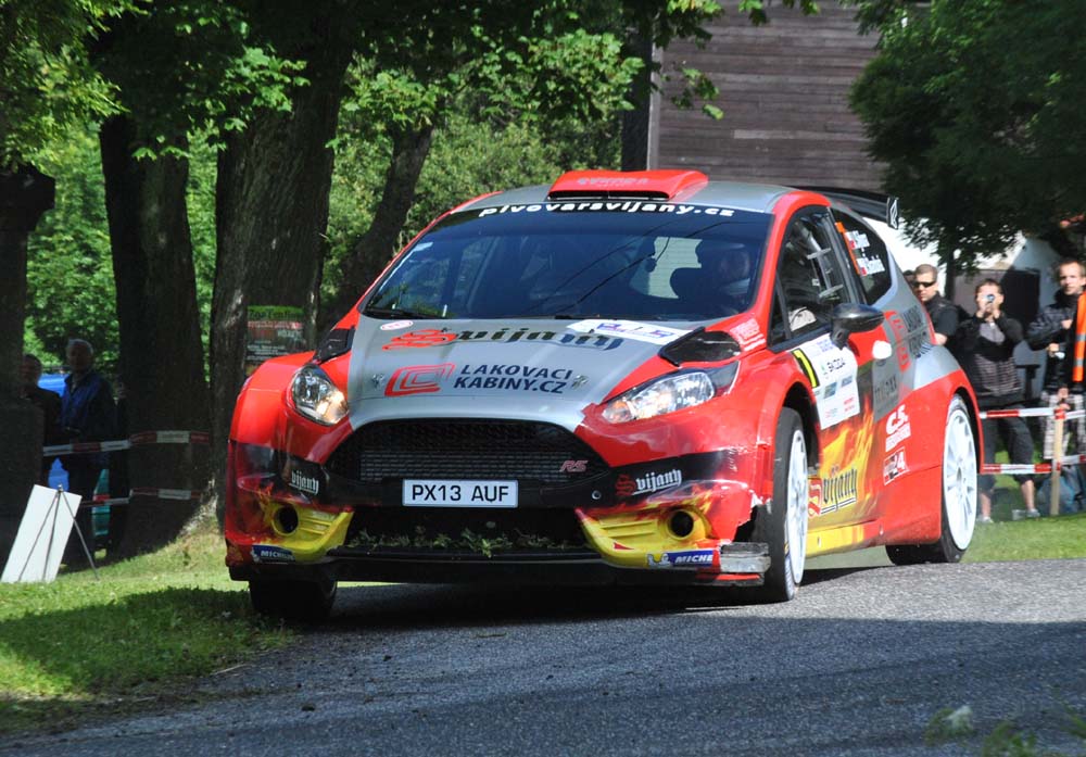 Ale hned další zkoušku prolétl nejlépe Jan Kopecký, čímž se dostal do vedení a pomalu ale jistě začal sbírat sekundy náskoku před Pechem a Romanem Krestou, čtvrtou příčku si držel Sýkora, jehož Ford Fiesta R5 měl ´na trati rally světovou premiéru. Pouze po desáté zkoušce si na moment vyměnili pozice Pech s Krestou, ale pak plzeňský jezdec vyhrál tři zkoušky za sebou a pořadí se vrátilo zpět, tedy druhý Pech a třetí Kresta.