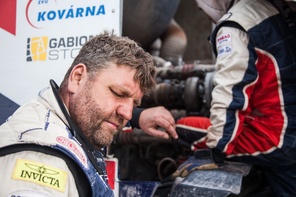 „První část byla hodně dramatická, protože se před námi objevil najednou Robbie Gordon a začal brzdit a zase se rozjíždět. Když jsme ho chtěli předjet, tak nás začal blokovat. Ve finále jsme mu trochu počechrali blatník, ale stěžovat si pak raději ani nepřišel. Když už jsme se ho konečně zbavili, tak nás málem sestřelil Stacey, takže fakt veselo. Druhá část byla rozbitá a to vyhovovalo naší Tatře a bohudík jsme pak bez obtíží začali předjíždět Iveca a Many. Pak jsem měl trochu obavy o Pepíčka, ale večer už byl zase plný humoru, tak věřím, že to spolu doválčíme ve zdraví,“ upozornil Valtr na stav Josefa Kaliny po dojetí do cíle. Navigátor a trojnásobný vítěz Dakaru po náročné a rychlé jízdě doslova kolaboval. Až po dojetí do bivaku si mohl po zásahu týmového fyzioterapeuta užít atmosféru z dobrého výsledku.