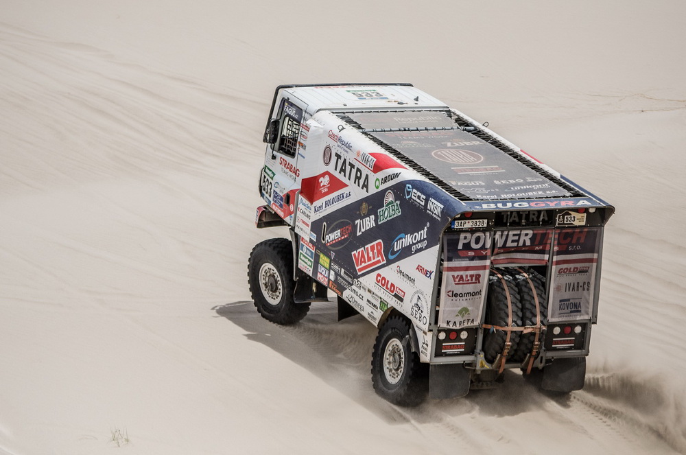 Jaroslav Valtr dnes ustlal svému Phoenixu na boku, poté co se snažil vymanit z dun. Na kola je postavila až Tatra Martina Kolomého, který ukázal týmového ducha. Valtra pak v cíli chyba mrzela, protože mohli z dnešní etapy hodně těžit. „Dnes to byla velmi krásná etapa. Na začátku jsme ale hodně ztratili blouděním, protože jsme hledali asi čtyřicet minut bod. Pak jsme se ale pěkně rozjeli. Cestou jsme potkávali auta a nám se dařilo vše překonávat. Bohužel dvacet kilometrů před cílem se Phoenixovi už nechtělo a ustlal si v dunách. Naštěstí po pětadvaceti minutách jel okolo Martin a vytáhl nás. Ztráta mě samozřejmě mrzí, ale stále se učím. Auto funguje bez problémů, takže jsem spokojený,“ uvedl v cíli Jarda Valtr.