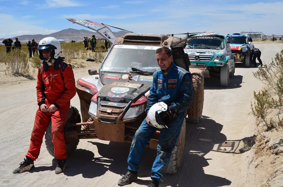 „Byla to etapa přímo pro nás. Třikrát jsme sice museli zastavit, protože se rozbilo zrcátko a vysypalo se nám do kabiny. Potom jsme stáli a fixovali ventily na kolech, protože se neustále otevíraly, když jsme projížděli křovím. A kromě toho jsme pomáhali dehydratovanému motorkáři. Bylo totiž hrozné horko. Organizátor kvůli toho zkrátil etapu, což se nám hodilo, protože jsme měli defekt a postupně nám ucházel vzduch z pneumatiky. Naštěstí jsme dojeli až do cíle. Artur na šestém, my na sedmém a Albert na pětadvacátém místě, což je skvělé. Doufám, že na toto umístění navážeme ve zbytku soutěže," řekl Tomáš Vrátny po dojezdu do bivaku.