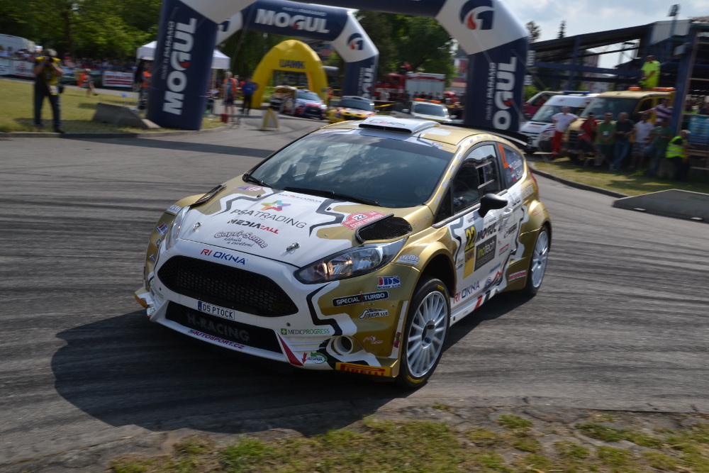 po pátečních šesti zkouškách tak vedl Kopecký před Tidemendem (+35,6), Dohnalem s Fordem Focus WRC, Černým se Škodou Fabia S2000 (+1.44,9) a Jakešem s Citroënem DS3 R5 (+1.47,2).