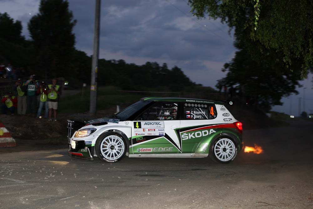 Kopecký se dostal do vedení po třetí rychlostní zkoušce a do konce soutěže pak již postupně svůj náskok navyšoval. Přestože se účastnil pouze dvou z již odjetých tří soutěží, figuruje na druhém místě. V první rychlostní zkoušce se Kopecký se Starým poprvé a naposledy neumístili mezi prvními třemi. Od té chvíle ale nenechali nikoho na pochybách, kdo je hlavním adeptem na vítězství. Všechny čtyři páteční erzety (52 km) byly nesmiřitelným bojem o desetinky a den končil Kopecký pouhou 1.6 sekundy před druhým Pechem a 5.8 s před Krestou na další Fabii Super 2000.