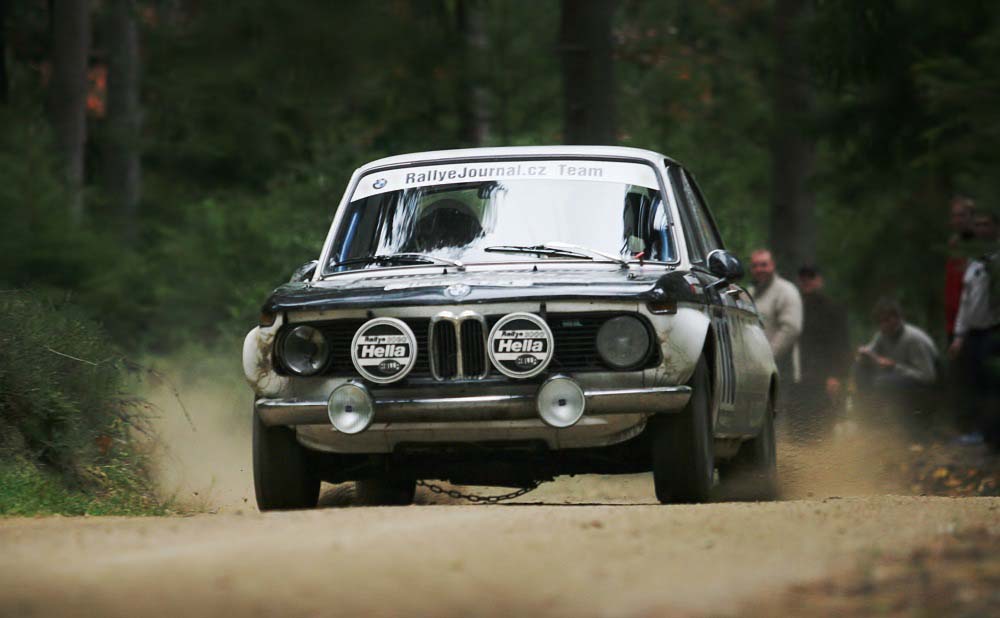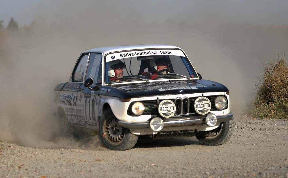 Startujeme do soutěže po třetí hodině odpolední a hned se jede na kilometr vzdálenou zkoušku. Vyrážíme vstříc prvním kilometrům na šotolině, obutí nemáme optimální - sériové gumy s šotolinovým protektorem. Vložka začíná kilometrovým úsekem na asfaltu, pneu se chovají jako „žvejkačka", auto plave jako na gumě. Prý se na šotolině, a až se trochu ohoblují, zlepší, tvrdí náš odborný poradce pan Beran. Měl pravdu, ale máme jiný problém - poznámky typu: pozor vyjeté koleje nemají smysl. Startujeme s číslem 118 a vyjeté koleje jsou úplně všude. Místy tak hluboké, že bavorák drhne desítky metrů po břiše. Na hladším povrchu jde auto okamžitě do smyku, ale je řiditelné, což se snažím rychle naučit. Začíná se mi to opravdu moc líbit. Rychlostka končí po deseti kilometrech na závodišti v Nordring a když už si myslím, že auto ve smyku řídím, přichází srážka s realitou, tedy s balíkem. V prvním okamžiku si myslím, že je konec. Jedeme totiž s přídavnými světlomety a podle intenzity nárazu usuzuji, že jedeme vstříc přicházející tmě bez nich. V cíli vložky si nadávám, ale ukazuje se, že to odneslo jen pravé hlavní světlo.