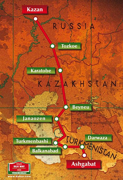 Úvodní část soutěže v Tatarstánu bude relativně rovinatá, hnaná po rychlých pistách. Střední, kazašská část může být zvlněná se spoustou kamenitých pasážích, podle pořadatelů připomínajících marocké hory. Lahůdkou by měly být závěrečné dvě etapy v dunách pouště Karakum, jež zaujímá 80 % území Turkmenistánu. Právě duny by měly rozhodnout o vítězích a poražených.