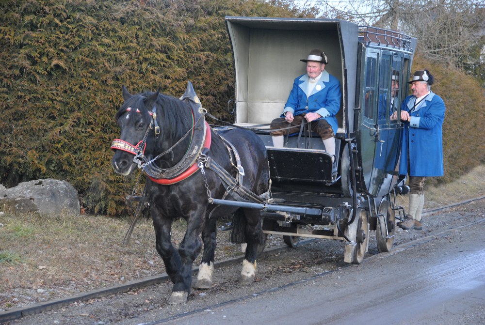 Právě tady,64,6 kilometru od Českých Budějovic a 64,3 km od Linze se setkalo kvarteto soutěžních jezdců, aby na chvilku vyměnili volant za opratě a sportovní sedačku za tvrdou lavici dostavníku.