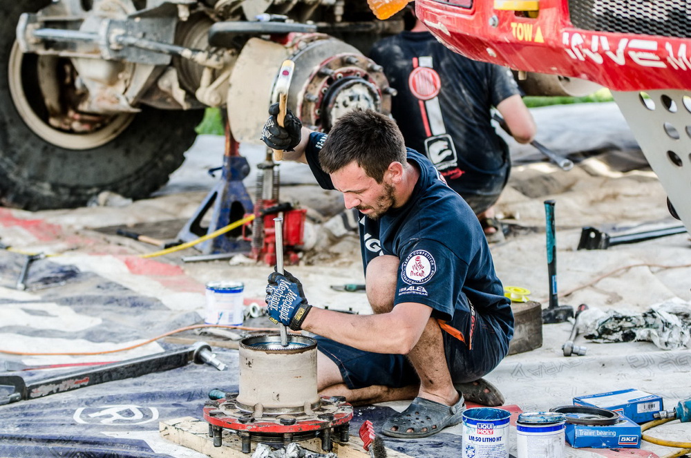 Český tým letos využívá nového Phoenixe nejen jako závodní speciál, ale také jako servisní vůz. Od příjezdu se sehraný tým českých mechaniků vrhl na všechny tři závodní speciály a největší péči potřeboval po sedmé etapě Fat Boy.