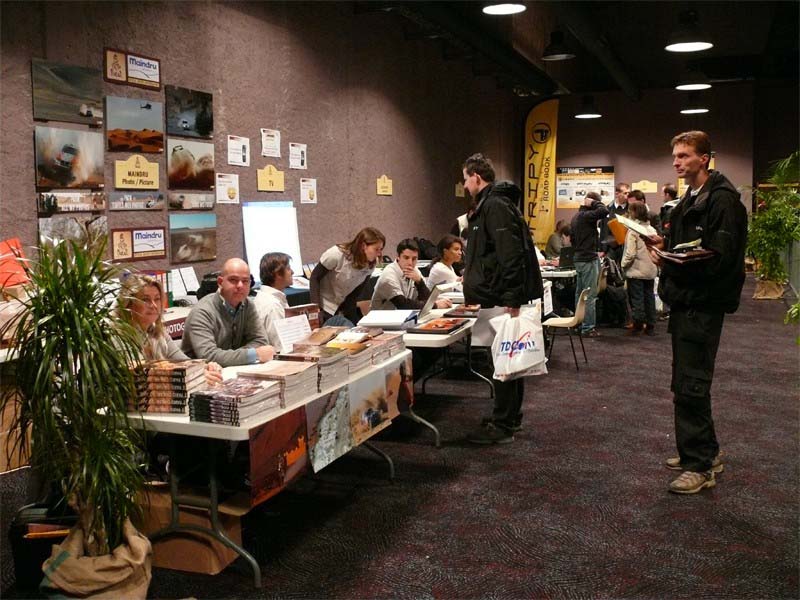 Přesto jsme stáli u brány do areálu už lehce před osmou hodinou, ačkoliv náš nástupní čas zněl 8.15. Přejímkový ruch toho dne se teprve rozbíhal, a tak jsme jednoduše a rychle propluli jejich administrativní částí, kde nám na několika stanovištích zkontrolovali dokumentaci k vozům, obdrželi jsme GPS navigaci, bezpečnostní komunikační zařízení iritrak, krátkovlnnou vysílačku pro předjížděcí manévry, tzv. sentinel – a bylo hotovo. Po obdržení výstupního razítka jsme se vrátili k autům, všechny přístroje namontovali, nechali si je zkontrolovat komisaři a mohli jsme najet dovnitř do haly. Tam nás nejdříve čekalo polepení aut startovními čísly a povinnými reklamami partnerů soutěže. Poté jsme najeli na tenzometrickou váhu a následně nám technický komisař Fabien Calvet zkontroloval plombu na turbodmychadle. Nad plombováním bloku motoru a rámu naší Tatry víceméně mávl rukou se slovy „pokud byste během rallye vy u náklaďáku měnili motor nebo rám, buďte si jisti, že bych se o tom dozvěděl“.