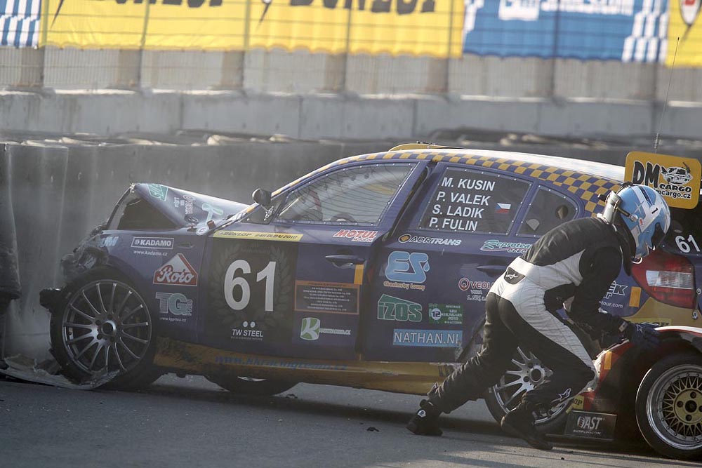 Petr Válek s opraveným autem svůj stint dokončil a přenechal místo za volantem Fulínovi, který zastoupil Kusína, aby si po probdělé noci odpočinul. Zajel opět několik rychlých kol a zdálo se, že by ztrátu na oba vedoucí týmy mohl snížit. Jenže při předjíždění už obstarožní „placky“ Sakeru Sportscar GT TDI nizozemského týmu Henka Thijsena se mu soupeř zezadu doslova vklínil pod vůz, bavoráka nadzvedl a narazil s ním do betonové zdi. „Bylo to asi v padesátikilometrové rychlosti, auto to odneslo rozbitým předkem. Soupeř se přišel omluvit, ale zřejmě ani nebrzdil, protože, když jsem ho vnějškem předjel, tak mi nepochopitelně svojí „plackou“ podjel auto, nadzvedl zadní kola a vrazil se mnou do zdi. S tím nic dělat nešlo. Bohužel jsme ztratili šanci bojovat ještě o místa před námi“, řekl Fulín.