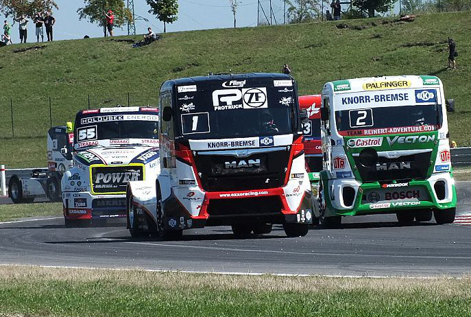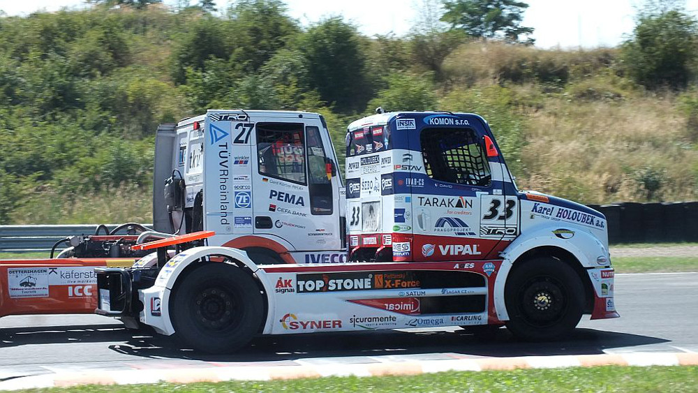 V kvalifikačním závodě FIA Truck Racing Championship sice ještě zvítězil zatím suverén letošní sezóny rychlých trucků Maďar Norbert Kiss, před Němcem Hahnem a naším Adamem Lackem na Buggyře, ovšem vrcholem dne se stal závod pohárový, tedy nejen jinak bodově hodnocený, ale také s obráceným pořadím osmi jezdců z předchozí jízdy. Odstartovat se do něj povedlo velmi pěkně Němce Stefi Halm na MANu, ovšem Buggyra s Adamem Lackem a hlavně Davidem Vršeckým ji nakonec udolali a oslavili vítězný double, který českým divákům udělal nemalou radost ve tváři. Frankie Vojtíšek za sebou nechával i Albaceteho s Hahnem, ovšem ti mu nakonec ujeli, ale na třetího českého zástupce zbylo bodované deváté místo, stejně jako v předchozí kvalifikační jízdě.
