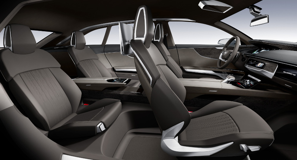 Prostorný interiér má charakter luxusního salonku. Dlouhá středová konzola s vybranou spodní částí jako by se vznášela v prostoru, stejně jako štíhlá přední sedadla, jejichž kolejnice jsou připevněny ke středovému tunelu a bočním prahům.