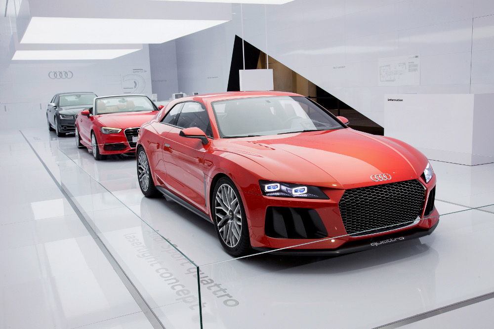 Audi Sport quattro laserlight concept ukazuje technický náskok značky se čtyřmi kruhy v mnoha úrovních. Pohon, založený na technologii e-tron, poskytuje výkon 515 kW (700 k) při spotřebě paliva pouhých 2,5 l/100 km. Další inovací jsou laserové světlomety, které výkonem zastíní dosavadní automobilovou osvětlovací techniku. V oblasti elektronické výbavy udávají směr vývoje nové zobrazovací a ovládací systémy.