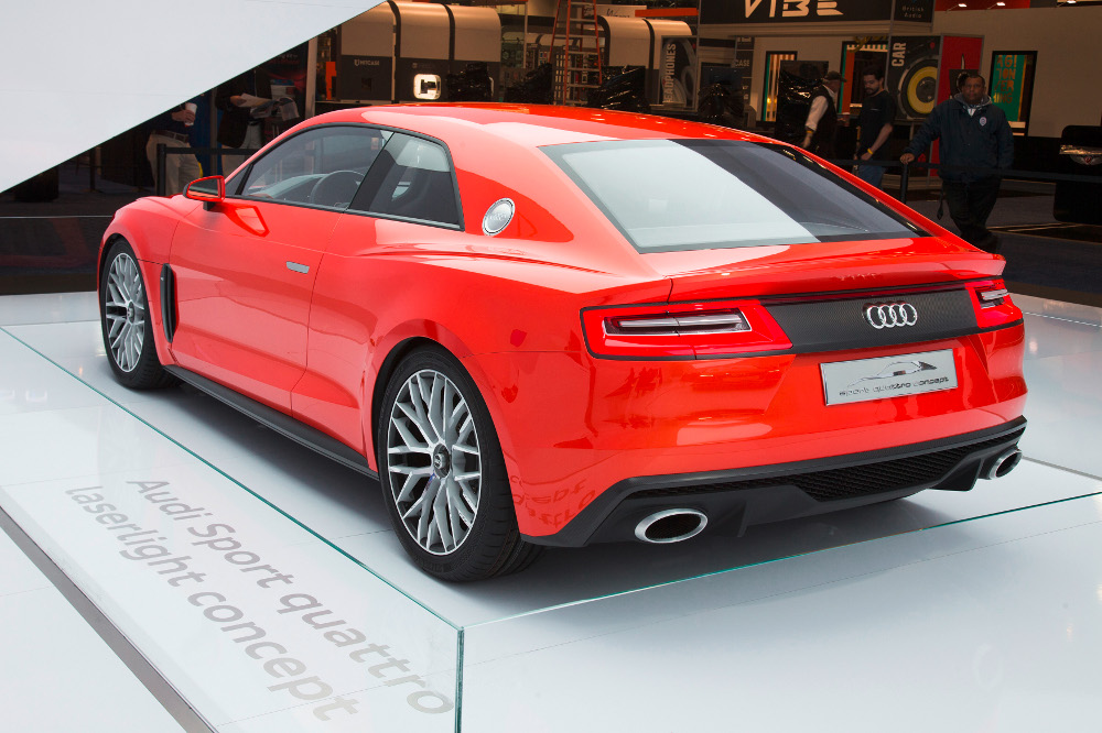 Atraktivní kupé je evolucí loňské studie Audi Sport quattro concept a spojuje sílu modelu Sport quattro s emocemi. Převisy karoserie jsou krátké a proporce harmonicky sportovní. Velmi široké a nízké dvoudveřové kupé má při rozvoru 2784 mm vnější rozměry 4602 x 1964 x 1386 mm.