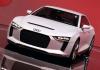 Hned pohled na koncept v bílém odstínu Col de Turini vyvolá vzpomínky na Sport quattro z roku 1984, evoluční verze vozu Audi quattro Coupé se zkráceným rozvorem.