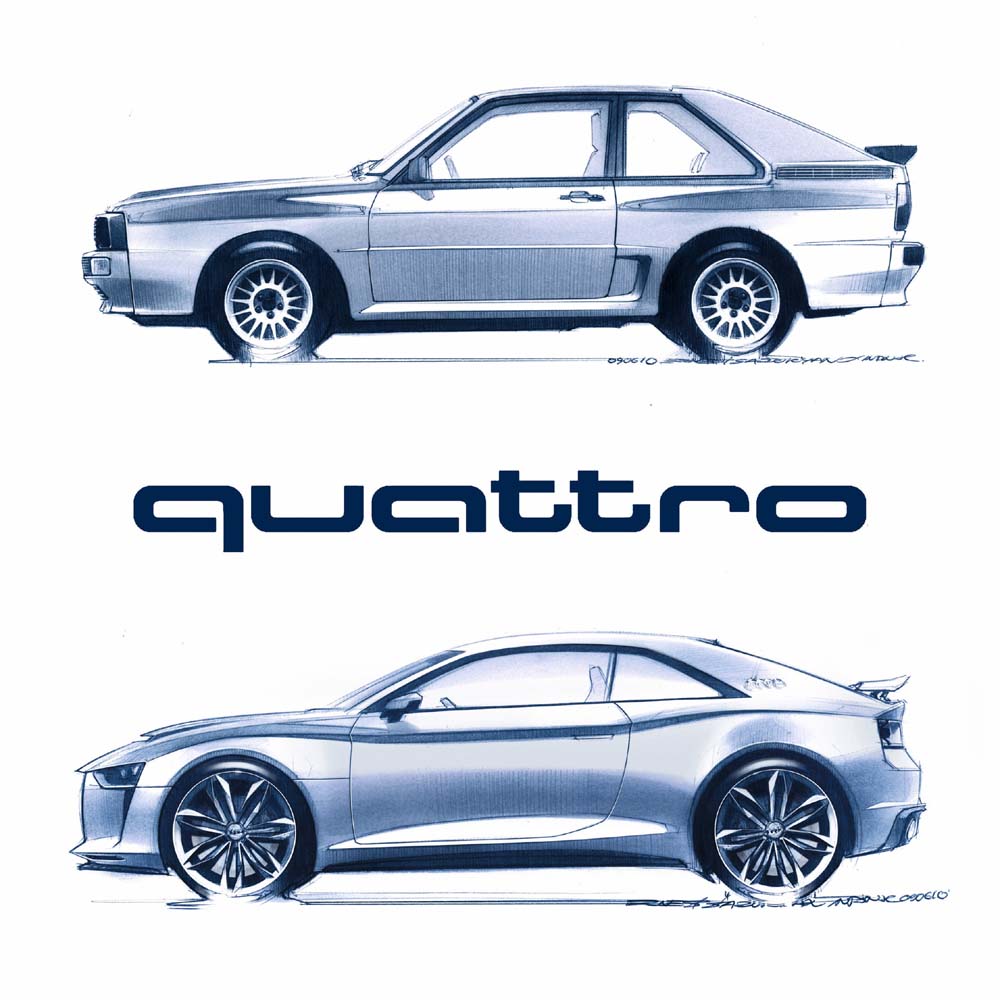 Na oslavu 30. výročí od představení prvního Audi quattro vystavuje Audi na pařížském autosalonu futuristickou interpretaci původní koncepce v podobě studie Audi quattro koncept s výkonem 300 kW (408 k).