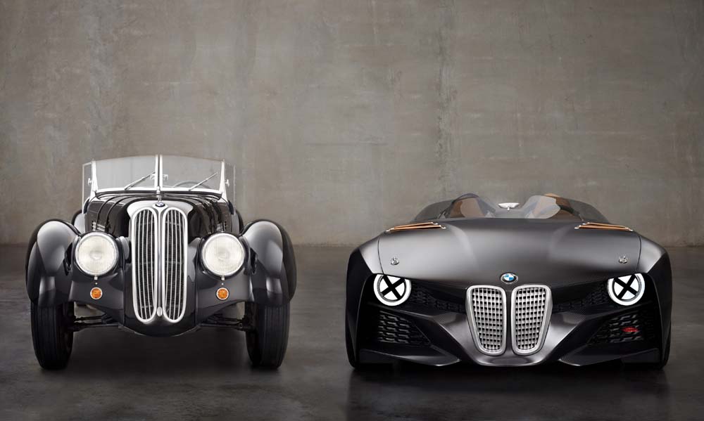 Velké kulaté světlomety jsou další reminiscencí původního BMW 328. Jsou však rozdělené na čtyři části a tvořené světelnými diodami. Rozdělení symbolizují černé pásky, které používaly závodní vozy minulosti. Nepřehlédnutelná jsou též dvoudílná hliníková kola s otvory připomínajícími originál, dokonce nechybí ani dobová centrální matice.