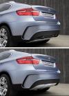 Nové BMW X6, crossover z kategorie SAV (Sports Activity Vehicle) kombinuje v sobě prvky z terénního modelu X5 a čtyřdveřového sportovního kupé. Svými rozměry – délka 4,88 m, šířka 1,98 m a rozvor 2,93 m je o něco větší než X5, ale s výškou 1,70 m má dva centimetry pod míru. Robustní tvary zdůrazňují mohutná spodní část s nápadnými podběhy, 21“ kola a jasně tvarované prahy, stejně jako okenní linie. Siluetu vozu ohraničují na bocích zadní svítilny ve tvaru L. Spodní část charakterizují mohutné nárazníky s ochranným krytem podvozku a integrovanou dvojitou koncovkou výfuku.