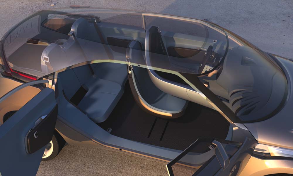 Odvážné rysy pokračují také v dvoubarevném interiéru. Nápadná jsou přesazená tenká přední sedadla, stejně jako ztvárnění přístrojové desky. Sedadlo spolujezdce lze v případě potřeby transportu třeba jízdního kola zasunout pod sedadlo řidiče. Tím se také zvětší objem úložného prostoru na 2000 litrů, přičemž vlastní zavazadlový prostor má objem 470 litrů. K vzdušnému interiéru přispívá panoramatická střecha.