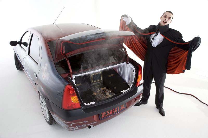 Pro zvýšení atraktivnosti zkombinovala německá ladičská firma Deswart nejlevnější sedan Dacia Logan s nejdražším multimediálním zařízením a to celé na motivy hraběte Draculy. Oba mají k sobě hodně blízko – upír i auto pocházející z Rumunska.