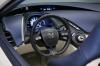 Palubní deska je rozdělena do několika částí, přičemž nejdůležitější přístroje leží přímo v zorném poli řidiče. Klíčové informace jsou zobrazovány na zaobleném, uzavřeném středním panelu, čísla jsou v zářivě modré barvě na černém pozadí. To je v souladu s čalouněním vozu, jehož sedadla a obložení dveří jsou potažena novým modrým koženým materiálem s lesklým efektem, jiné části bílou kůží, v harmonii s barvou karosérie, jež je vyvedena v originálním odstínu nazvaném Mystic pearl.