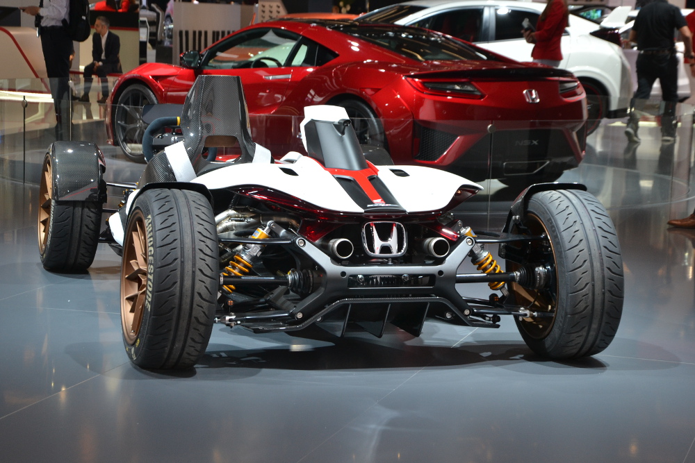Konstrukce karoserie a umístění motoru, navazující na závodnickou tradici, byly inspirovány legendárním motorem Honda RA272 z roku 1965. Konstrukce vychází z rámu a funkčních dílů osobního vozu, avšak velmi kompaktní vzhled připomíná spíše motocykl. Celková délka je 3 040 mm, šířka 1 820 mm a výška 995 mm. Nízká hmotnost pouhých 405 kg umožňuje maximální výkon středově umístěného motoru, který společně s nízkým těžištěm zajišťuje výjimečně citlivou odezvu.