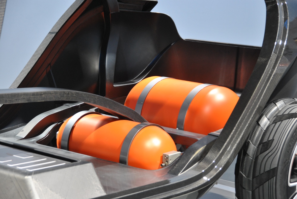 Interiér je zaměřen na užitné vlastnosti a variabilitu. Pozornost je přitahována k pokrokovým materiálům a radikální konstrukci skeletu vozidla. Těsnění dveří, kapoty motoru a víka zavazadlového prostoru přiléhají přímo k centrálnímu rámu z uhlíkového kompozitu, který je viditelný při každém jejich otevření. Obvykle skryté komponenty jsou zde vystaveny na odiv, včetně „průhledných“ výdechů ventilační soustavy a odkrytého rámu, k němuž jsou přímo upevněna sedadla.