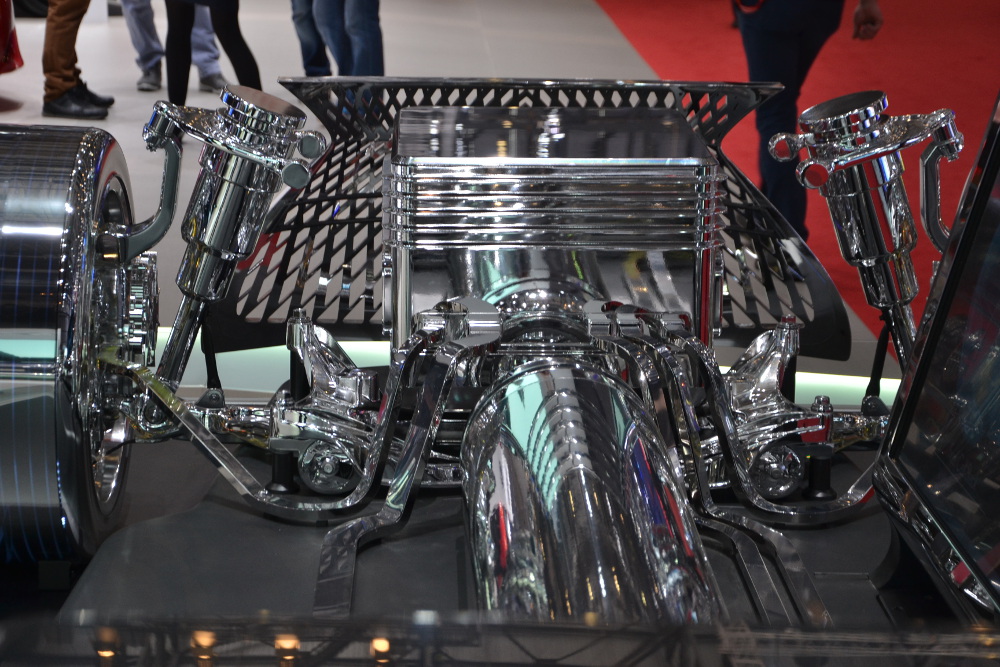 Poháněna nejsou pouze samotná zadní kola, neboť soustava pohonu posílá energii i dvěma elektromotorům zabudovaným do předních kol, čímž se tento koncepční model řadí do kategorie vozů s pohonem všech kol. Pokrokový systém pohonu umožňuje přesně rozdělovat hnací moment mezi přední a zadní kola v zájmu špičkové stability při vysokých rychlostech jízdy a mimořádně agilní ovladatelnosti.
