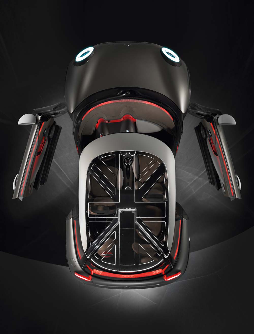 Do interiéru zajišťují přístup dveře umístěné na dvojitých pantech. Použití moderních konstrukčních metod a materiálů umožnilo, stejně jako v původním Mini, nabídnout na co možná nejmenším půdorysu maximum vnitřního prostoru. Koncept je s délkou 3419 mm na každé straně delší jen o několik centimetrů než původní provedení z roku 1959. Nová studie měří včetně zrcátek na šířku 1907 mm a je vysoká 1398 mm.